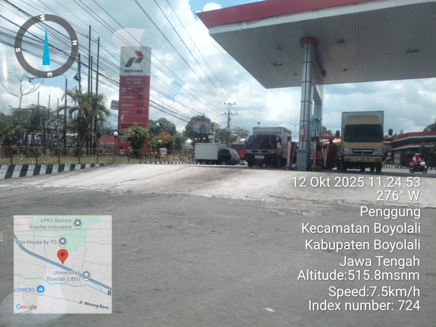 RuangBerita – Aktivitas mencurigakan berupa pembelian bahan bakar minyak (BBM) bersubsidi jenis solar dalam jumlah besar terpantau terjadi di SPBU 44.573.05, Jl. Boyolali–Semarang, Penggung Sungingan, Boyolali, pada Senin (13/10/2025) sekitar pukul 11.24 WIB.